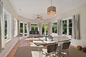There are five double bedrooms, all with wardrobes. Two of the bedrooms are located at one end of the home with the 2nd bathroom servicing this area, making it ideally suited to being a guest wing or for teenagers. The living rooms work really well for a growing family, including a separate lounge away from the main family living area. The home is well situated for sun with the family room flowing effortlessly out to a sunny decked area overlooking the park.