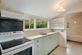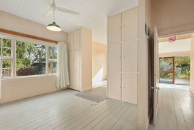 The dwelling, which would benefit from some updating, is a sun-soaked space boasting three bedrooms, open-plan living areas, and painted timber floors.