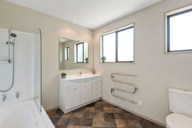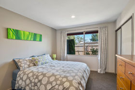 The home is also low maintenance with a combination of Summerhill Stone and timber panel cladding complemented by concrete tile roof and aluminium joinery. Located at the end of a right of way driveway the home is sited to maximise the potential of the private north facing outdoor living area and garden. The kitchen/dining area is open plan with the very generous sized modern kitchen featuring under bench oven, ceramic cook top, range hood, dishwasher, pantry, full length tiled splash back and the convenience of a breakfast bar. The dining area links seamlessly with the lounge, which opens out through ranch slider doors to the private patio and rear garden. Both double bedrooms have built in robes with the master featuring an en suite with tiled shower and underfloor heating. The generous sized family bathroom features bath with shower over, heated towel rail, toilet, large vanity and heated mirror. HRV System and heat pump ensure your year round living comfort. The home also features remote door single garage with internal access complemented by single carport and off street parking